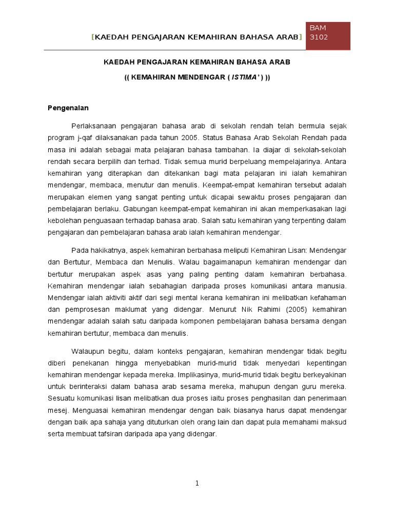 Kaedah Pengajaran Kemahiran Bahasa Arab Pdf
